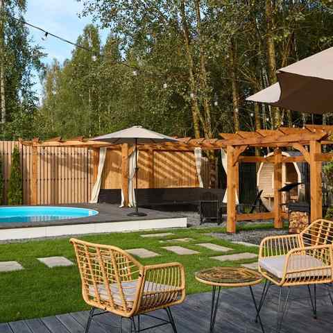 Каждая вилла рассчитана на размещение до 2 взрослых и 2 детей, что делает её оптимальным вариантом как для романтических поездок, так и для семейного уикенда. Внутри предусмотрено всё необходимое для комфортного проживания: кухня с техникой и посудой, постельное бельё, полотенца и гигиенические принадлежности. Для развлечения гостей установлены проектор для фильмов, настольные игры, а также обустроена терраса и зоны отдыха. На территории доступны мангальная площадка, костровая чаша и летние гамаки.